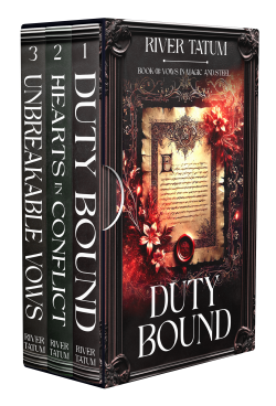 Vows in Magic and Steel Complete Boxed Setby River TatumAll three novels in the enchanting enemies-to-lovers fantasy romance series where magic, duty, and centuries-old hatred collide. When the monarchy forces a marriage between two feuding noble houses, gifted mage Elysia Kallendore and proud knight Lorand Valecrest must choose between their families’ ancient hatred and a fragile chance at peace. As mysterious attacks plague their lands and sinister forces threaten to destroy everything they hold dear, these sworn enemies discover that the strongest magic of all might be the love growing between them. Their world hangs in the balance. Each step toward trust risks betrayal, and every brush of attraction defies generations of bloodshed. Together, they must forge a new path that combines Elysia’s healing magic with Lorand’s warrior strength—or watch both their houses fall to ruin. $0.99 Previously $17.99 |